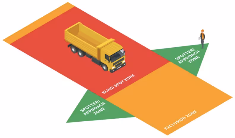 في مواقع العمل المزدحمة، من الشائع تشغيل عدة آليات في الوقت نفسه، مثل اللوادر التي تزوّد الحفارات بالمواد أو الشاحنات التي تتراجع للتفريغ أو الرافعات التي تدور بأحمال معلقة. في مثل هذه الظروف، تؤدي النقاط العمياء إلى مخاطر متعددة، منها: