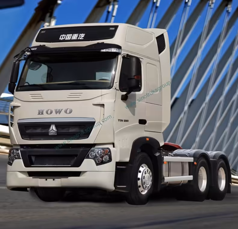 نجمها الأبرز: HOWO T7H 430 6×4 مزودة بمحرك 13 لتر 430 حصان، ناقل 12 سرعة، ومحاور مقواة بقدرة سحب تصل إلى 70 طنًا.