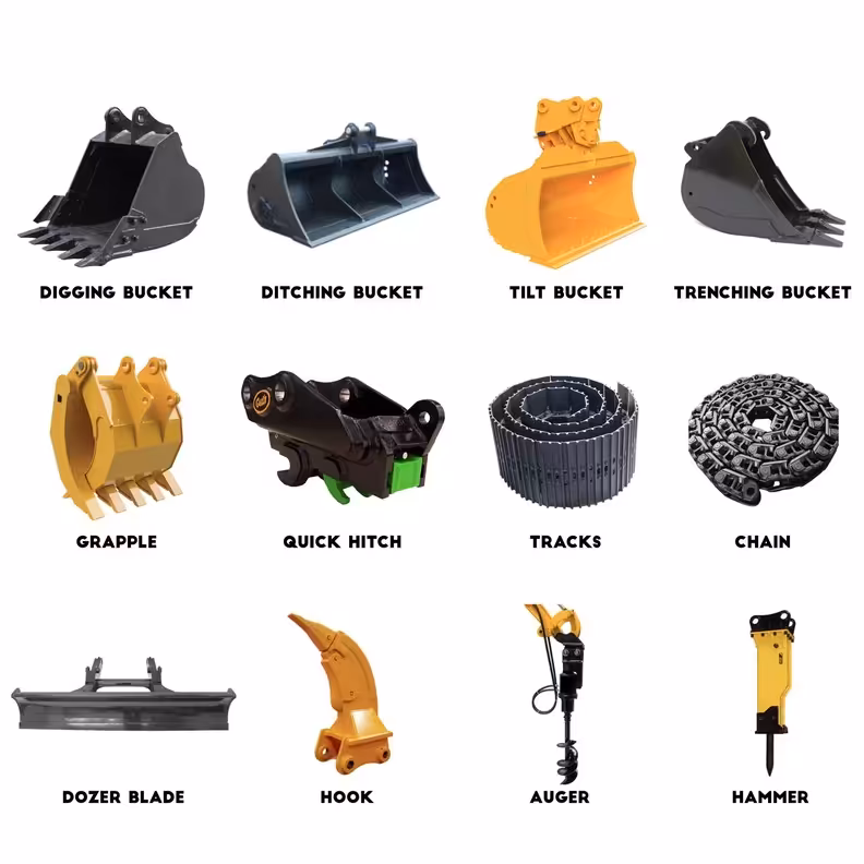 فكر في أنواع الملحقات التي ستحتاجها، مثل المثاقب والضواغط والمقالع، أو المطارق الهيدروليكية. تأكد من أن الحفار متوافق مع المرفقات التي تخطط لاستخدامها.