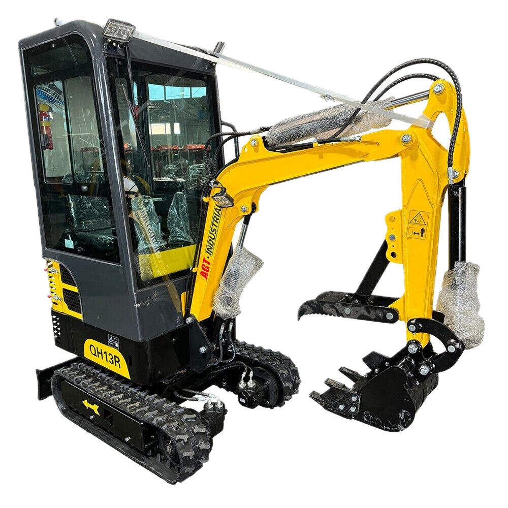 حفارة AGT QH13R تزن حوالي 960 كجم (~1 طن)، بمحرك RATO R420D بحوالي 13 حصان. مزودة بكابينة مغلقة كاملة تجعلها مريحة للعمل حتى في البيئات المتربة.