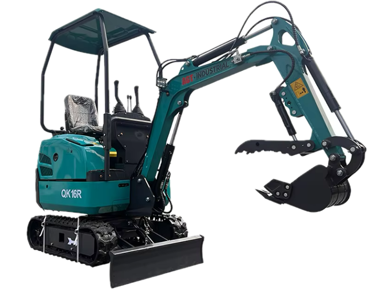 حفارة AGT QK16R تأتي في فئة وزن 1 طن تقريبًا، بمحرك RATO سعة 420 سم³ (~15 حصان) وتتميز بذراع هيدروليكي، و خط هيدروليكي مساعد، وشفرة خلفية، على هيكل ضيق عرض حوالي 99 سم.