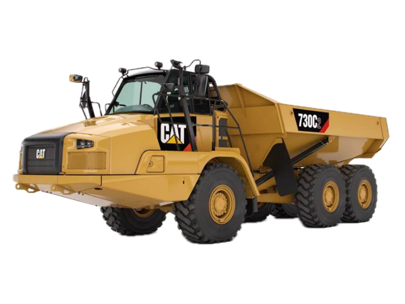 شاحنة Cat 730 المفصلية (2006–2025) تمثل وسطاً عملياً: قادرة على حمل حوالي 28 طن، بحمولة قلاّبة 17.5 م³، ومحرك C13 ACERT بقوة ~375 حصان. واضحة، عملية ولا تعقيد فيها.