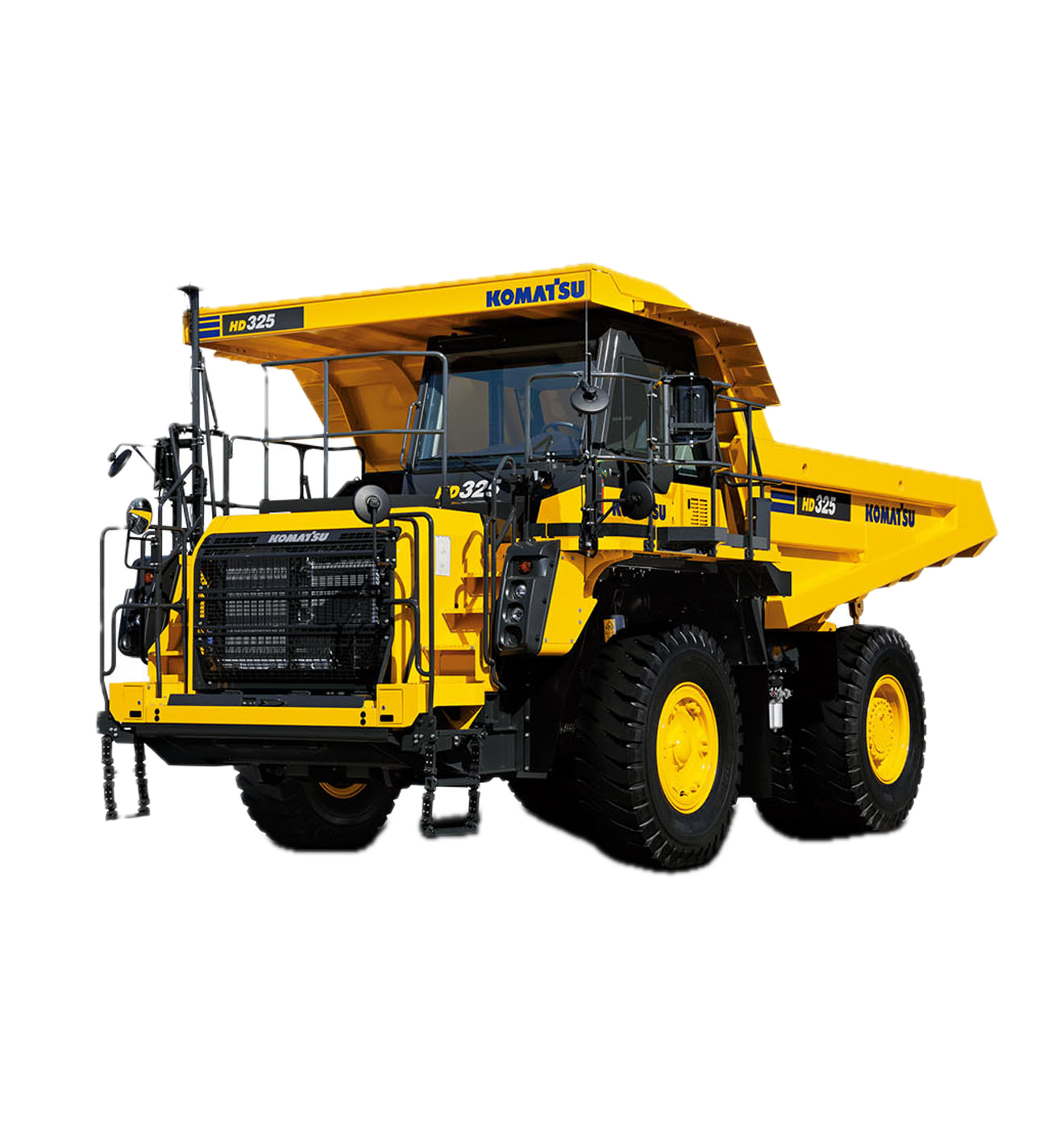 شاحنة Komatsu HD325‑7R/8 (2017–2021) هي شاحنة صخرية ثابتة محكمة لبنادق التحميل الصعب. تحمل ~36.5 طناً من الحمولة، صندوق ~24 م³ محمل، ومحرك SAA6D140E بقوة ~518 حصان إجمالي (~498 حصان صافٍ).