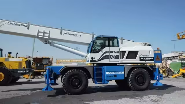 رافعة مانوتي ARM هي رافعة طرق وعرة عالية الأداء مصممة لأعمال الرفع الثقيلة في مواقع العمل الصعبة. بقدرة رفع قصوى تبلغ 55,000 كجم وارتفاع رفع يصل إلى 35 مترًا وناقل حركة هيدروستاتيكي، توفر ثباتًا ودقة عالية في المشاريع الصناعية والبنية التحتية والطاقة.