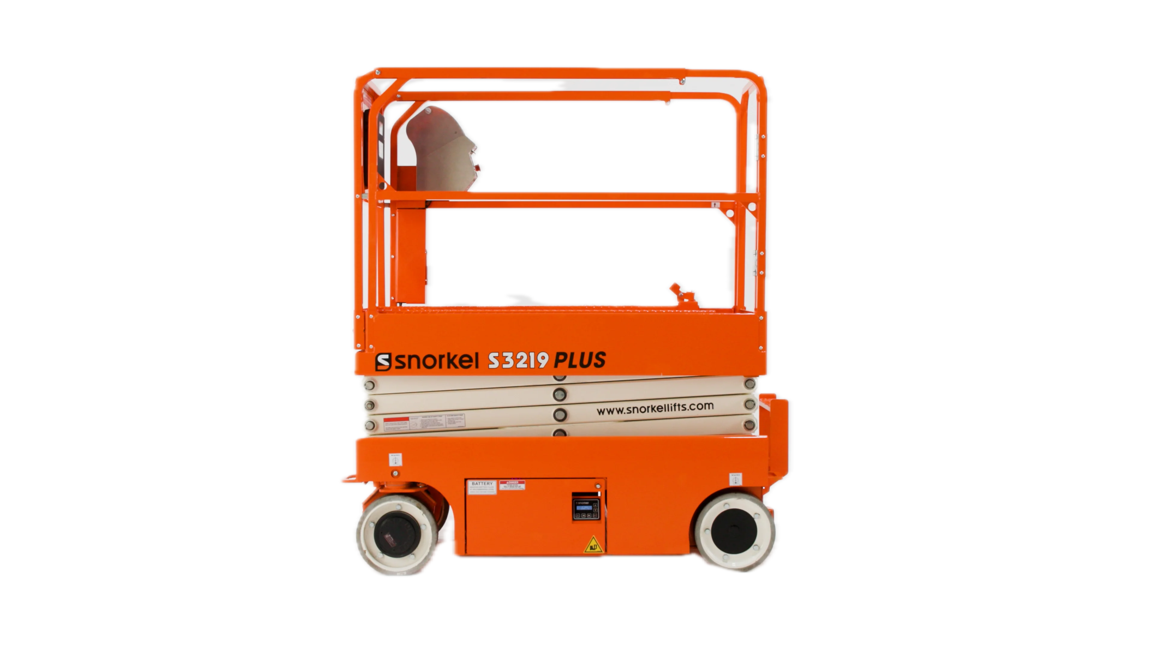 رافعة المقص الكهربائية Snorkel S3219E (2015–2025): ارتفاع عمل حوالي 7.79 م، عرض ضيق (~0.81 م)، وسعة حمولة 250 كغ (شخصين). تصميم عملي لجوانب الأعمال الضيقة وسرعة تشغيل بدون تعقيد.