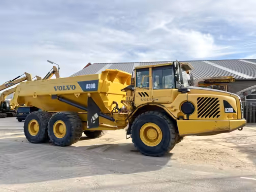 شاحنة Volvo A30 المفصلية (2002–2007) تأتي بنسختين: A30D بمحرك D10 بقوة 324 حصان، تحمل حوالي 28 طن، وسعة صندوق 17.5 م³؛ وA30G بمحرك أقوى (355 حصان)، تحمل نحو 29 طن، صندوق 23.3 ياردة³، مع تحسينات بيئية وخدمة أقل.