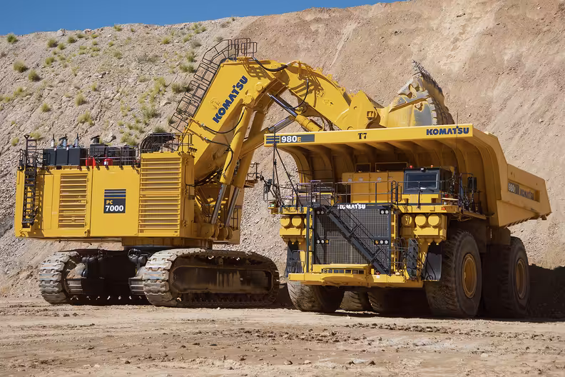 Slightly smaller than the PC8000 but still a beast, with up to 36 m³ bucket capacity. It is widely used in gold and copper mining.