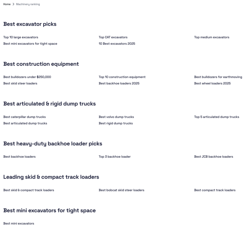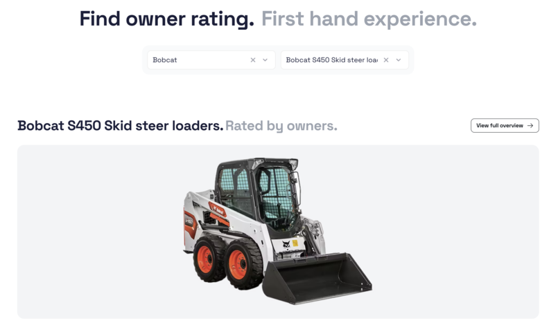 Reviews are continuously expanding. Most popular models from Caterpillar, Komatsu, Volvo, JCB, and Bobcat already have published reviews.