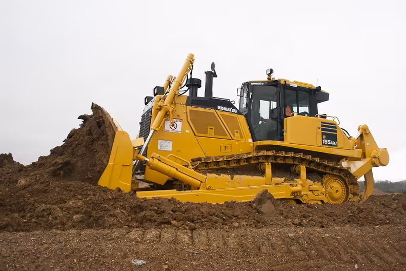 The Komatsu D155A crawler dozer offers a balanced combination of pushing power, fuel efficiency, and structural strength.