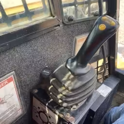 The cab layout is basic but functional. Controls are straightforward and visibility is generally good, though comfort and refinement are typical of early compact track loader designs.