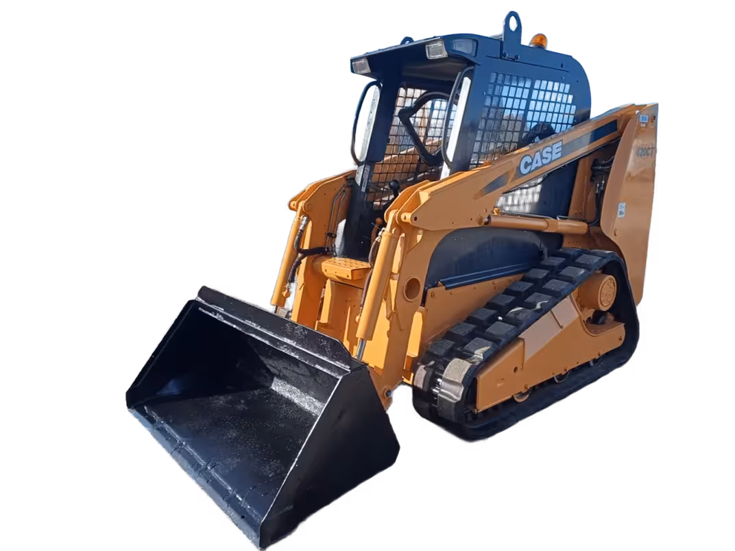 A compact track loader built for tight job sites and soft-ground work, the Case 420CT delivers 44 kW of power with a lifting capacity of 1,134 kg and an operating weight of 3,333 kg. Its rubber track system improves traction and stability compared to wheeled skid steers, making it useful for landscaping, site prep, grading, and light material handling.