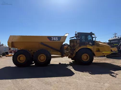 The Cat 745 is a heavy-duty, three-axle hauler with a 45-ton payload, powered by a 500 hp Cat C18 diesel. Designed for large earthmoving and quarry work, it combines raw load capacity with solid operator comfort.