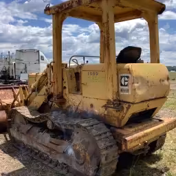 Rugged cab with workable visibility, older ergonomics.