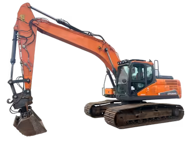 The Doosan DX225 (2007–2023) is a 22-ton class excavator designed for heavy construction and earthmoving operations. It features a 121 kilowatt engine, a 1.49 cu m bucket, and a 6.58 m digging depth, delivering strong performance for demanding job sites.