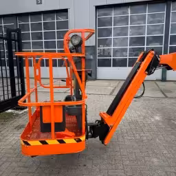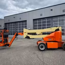 The E450 is an electric articulating boom lift built for both indoor and outdoor use, ideal for tasks needing up-and-over reach around obstacles. It runs on a 48 V battery system (zero emissions) and offers quieter operation compared to combustion booms. It may include a jib (~141° articulation) for added flexibility in tight access areas.