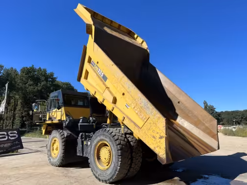 The Komatsu HD325-7R (2017–2021 modelled on earlier generations) is a robust 6×6 rigid dump truck built for high-volume material hauls. It delivers roughly 36.5 t of payload, a 24 m³ (31.4 yd³) heaped tub, and is powered by a 518 hp Komatsu SAA6D140E engine. No fluff—just steady, effective hauling.