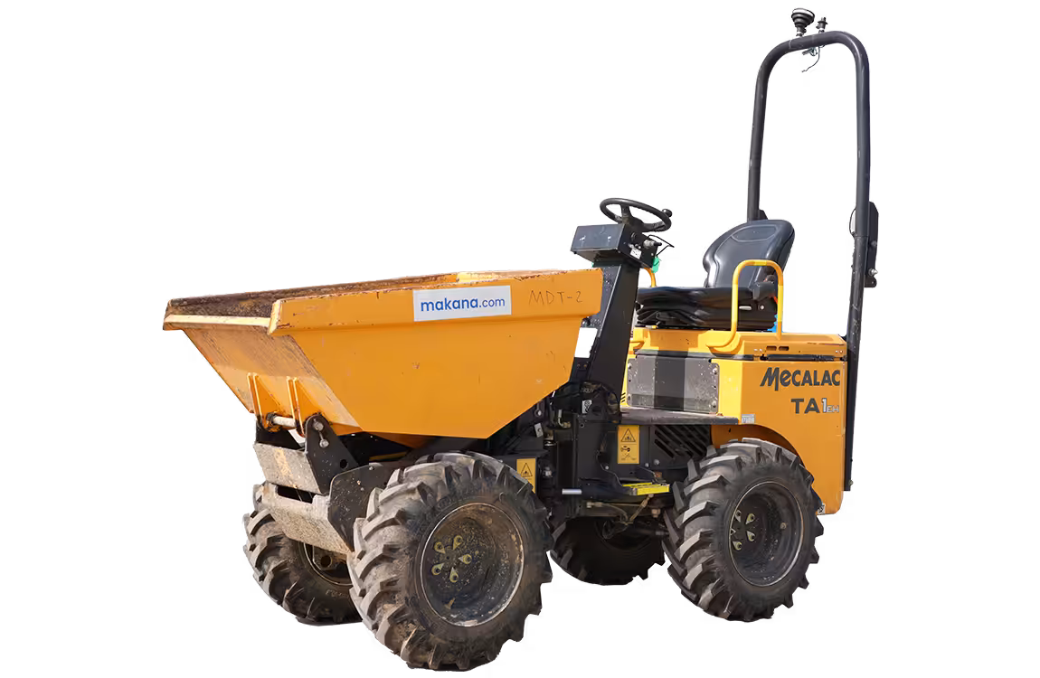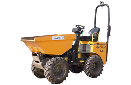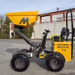 The Mecalac TA1 (2017–2020) is a compact 1-ton dumper designed for confined jobsites. With 4WD, hydrostatic transmission, and a high-discharge skip, it excels in urban and utility applications.