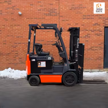 The Toyota 8FBCU (2010–2025) is a compact indoor forklift designed for smooth warehouse operation. It offers a 2,268 kg lifting capacity, tight maneuvering, and cushion tires optimized for finished floors.